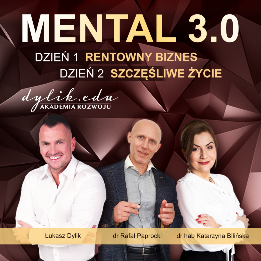 RENTOWNY BIZNES może równać się SZCZĘŚLIWE ŻYCIE. Żeby doskonale zarabiać — nie musisz się zajeżdżać, pracować po nocach i żyć w ciągłym pędzie. Nie musisz wybierać między biznesem a czasem dla siebie lub swoich bliskich. Szkolenie MENTAL 3.0 wprowadzi Cię w NOWY WYMIAR BUDOWANIA BIZNESU — z troską o własne samopoczucie i zdrowie mentalne.